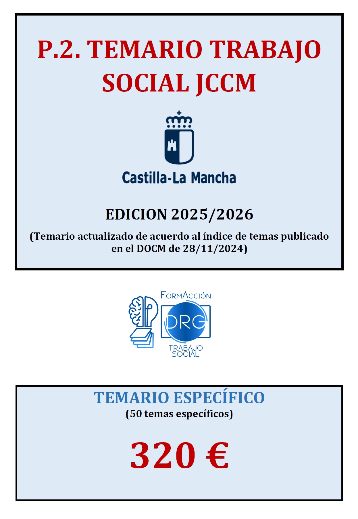 (Temario compuesto por los 50 temas de la parte específica de la especialidad de trabajo social de acuerdo al índice oficial publicado en el DOCM de fecha 28/11/2024)
